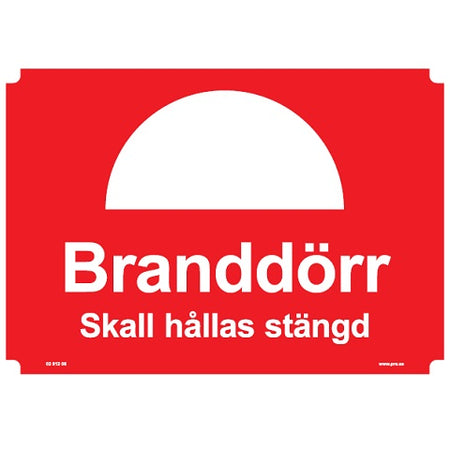 Brandskylt. Branddörr skall hållas stängd