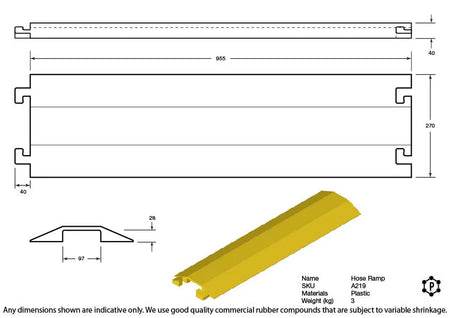 The R219 Hose & Cable Ramp is a robust, drop-over style protector designed for fast deployment across work sites, warehouses, events, or public walkways. At 1 meter in length, it features a wide cable channel and built-in male/female connectors for seamless end-to-end linking.