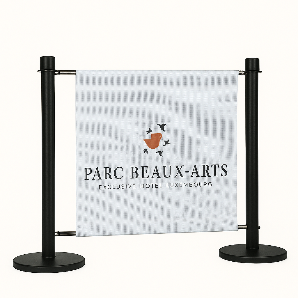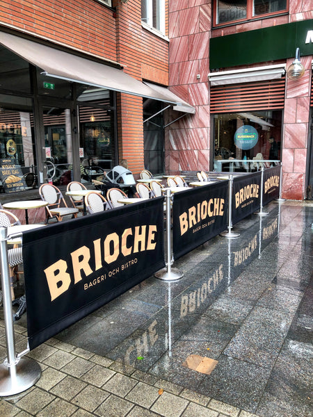 Showcase your brand in style with the Flexibarrier Café Barrier Set, now with a custom printed banner. Perfect for cafés, restaurants, and events that want to reinforce their identity with custom colors, logos, or messaging.
